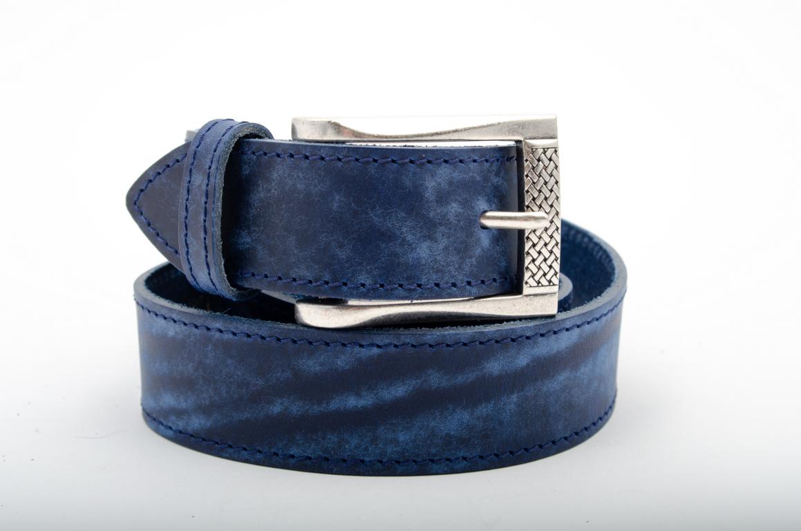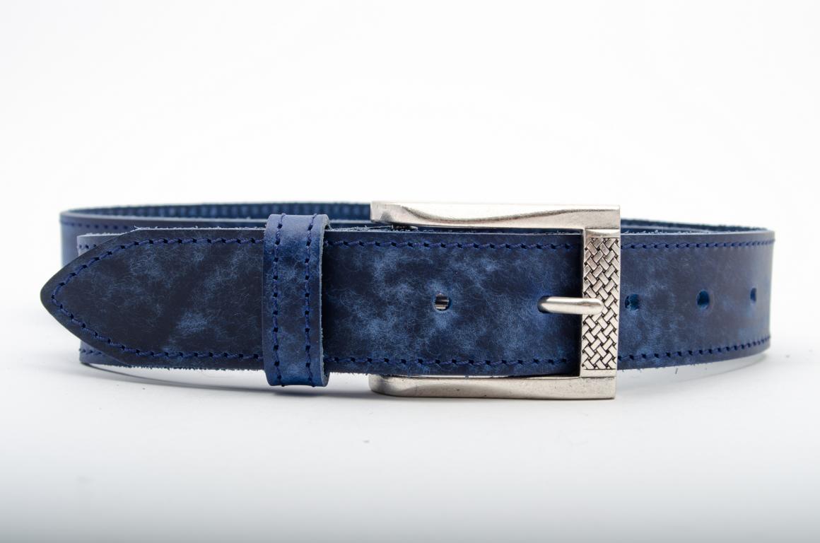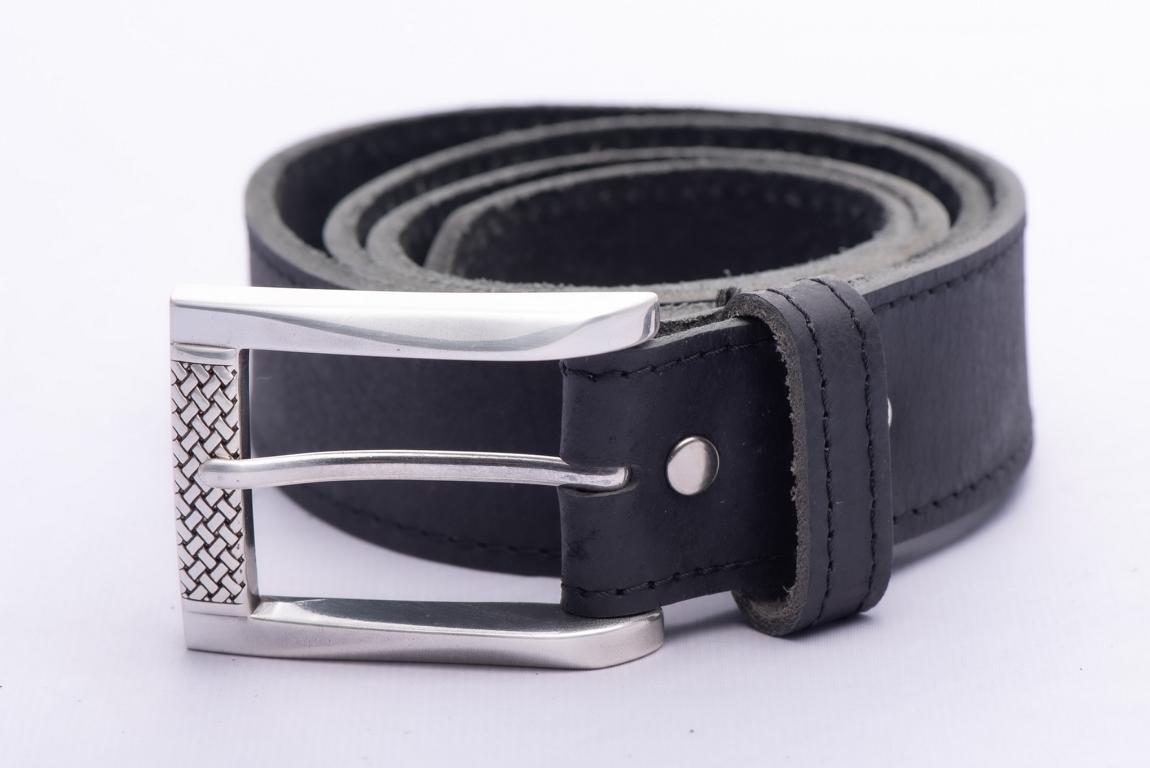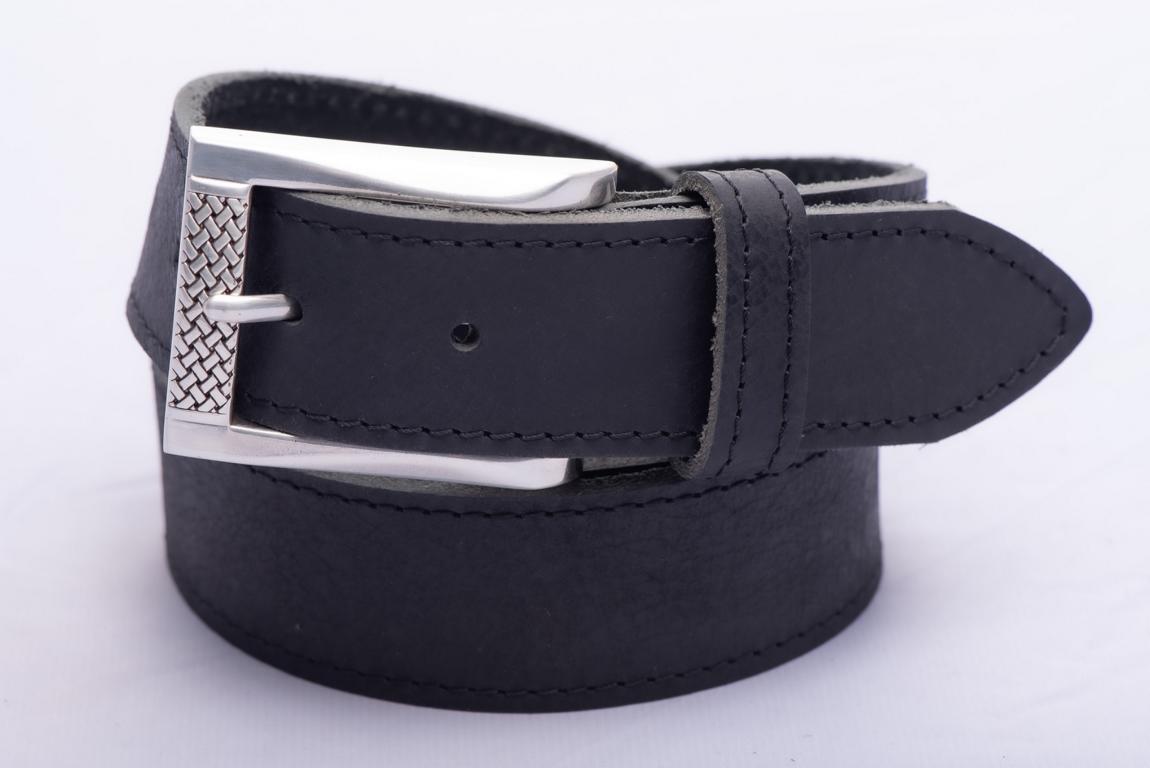 Klassischer für Jeansgürtel - handgefertigt aus Rindleder - mit Dornschließe in Silberoptik. Die schlicht aber ansprechend gestaltete Schließe ziert ein kleines filigranes Webmuster. .